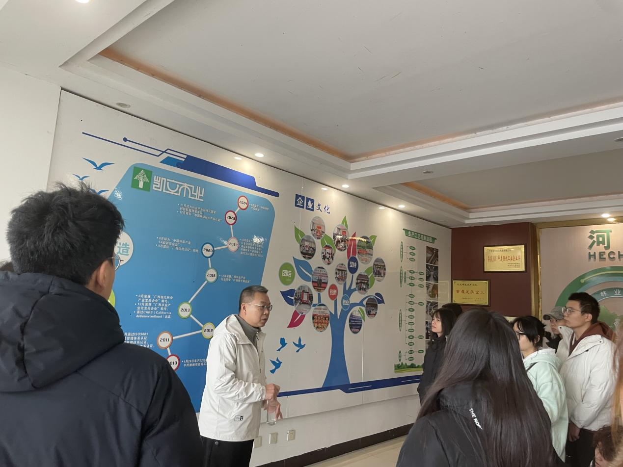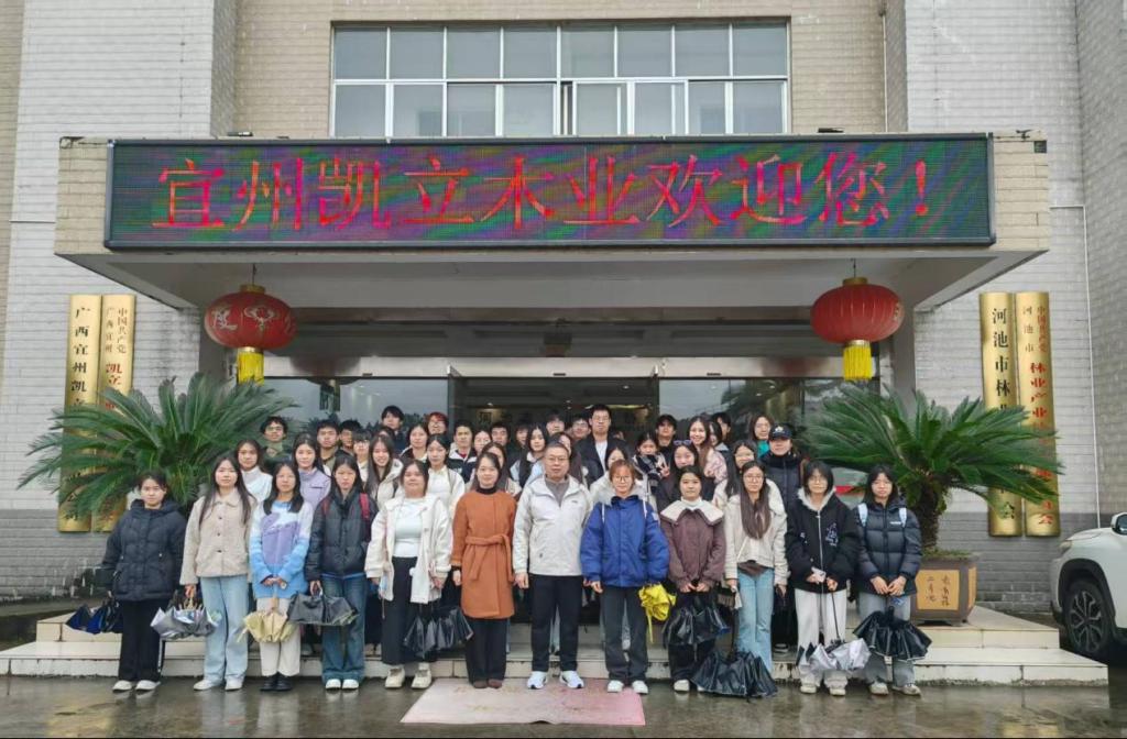 12月24日上午9时,9001cc金沙以诚为本市场营销专业2024级和2025级学生在刘蕙荟老师和莫凯老师的带领下,前往广西宜州凯立木业有限公司开展实践教学活动。本次参观以《管理学》和《市场营销学》课程为依托,通过实地走访与深度交流,让学生将课堂理论与企业经营实践相结合,深化对现代企业运营管理的理解。